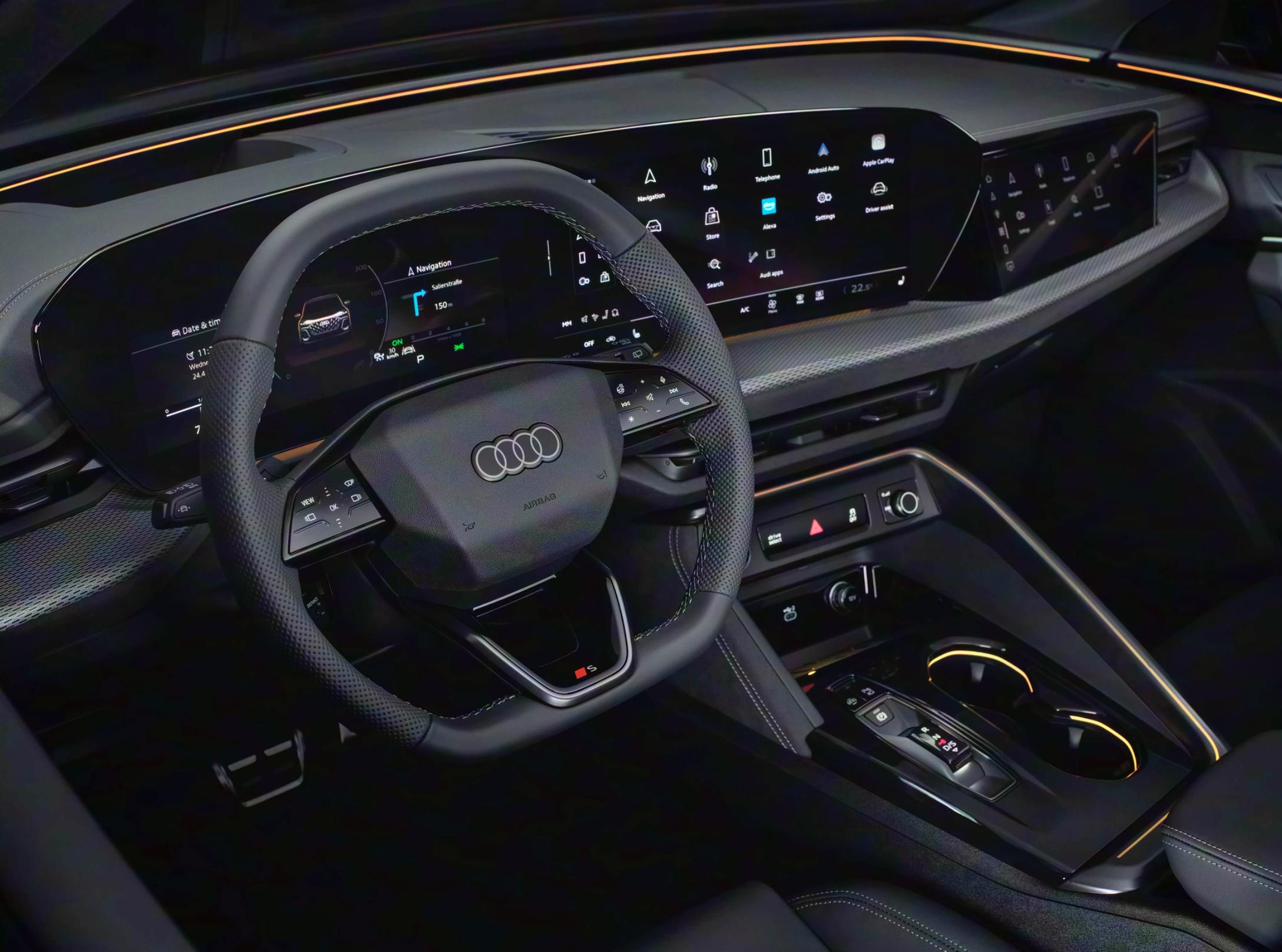 全新奥迪Q5L采用了奥迪最新的虚拟座舱设计,配备了11.9英寸的仪表+14.5英寸中控屏组成的曲面双联屏搭配13.1英寸HUD以及10.9英寸副驾娱乐屏,满足更多年轻人的用车需求。座舱采用了RS Line运动设计理念。采用了低饱和度的米白色软性材质铺陈,还加入了亮黑色钢琴烤漆饰板以及大量银色金属元素的点缀,随处可见的R-Line红色元素也渲染出浓郁的运动氛围。配置方面,最新一代MMI高端导航系统提供多样化信息娱乐功能、车内空气循环系统、最多19个扬声器的B&O 3D音响以及奥迪虚拟座舱。